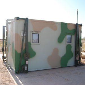 隨著武器裝備的快速發展,作為各型設備裝載用的方艙已經得到了普遍使用。為了減少使用吊車、鏟車裝卸方艙時的諸多不便,因此采用了方艙升降機構,它可以方便地把方艙從裝載車輛上卸下和裝上,升降機構現已成為方艙必備的裝卸工具。同時也可用于車載集裝箱的升降使用。